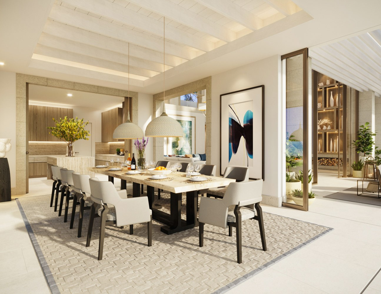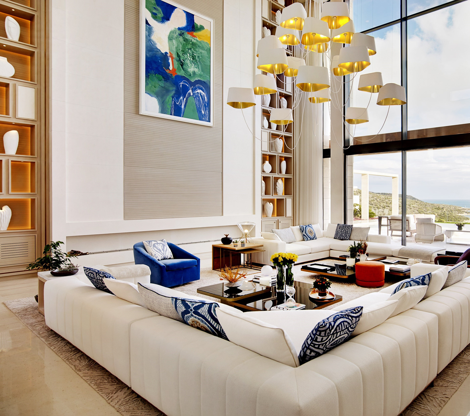 On entering the villa there is an outstanding double height lounge that opens up to a generous pool and seating area. All of the five bedrooms have views to the sea or into beautifully landscaped gardens.